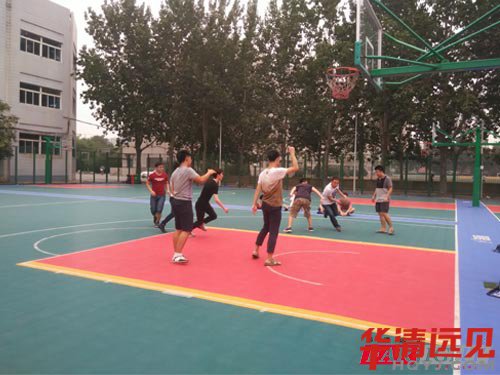 來到塑膠賽場,籃球友誼賽就正式拉開了序幕。不管是球場上奔跑的同學們還是坐在球場邊的同學們都很激動,所有人的視線都一直圍繞著那個籃球轉來轉去。