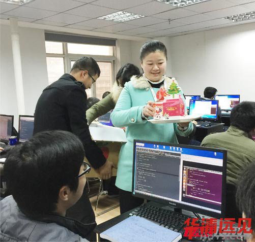 下午15時武漢中心的全體老師開始行動,給武漢中心正在刻苦學(xué)習(xí)的華清學(xué)子送上節(jié)日的祝福,大家紛紛走進教室,同學(xué)們臉上都露出驚訝的表情,各位老師把祝福的話語和蘋果送到每個學(xué)生的手里,學(xué)生收到這份禮物都露出了開心的笑臉,也算在寒冷的冬天,分享了關(guān)懷和溫暖。收到禮物,同學(xué)們都開心的笑了。