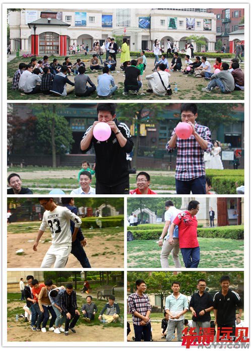 大約3點左右我們聚集在教堂前的廣場上,準備做兩個小游戲,為我們的這次外出活動填上豐富的色彩,大家分成小組,盤坐在教堂前,主持人交代今天的游戲內容和規則,分派任務,接著我們的游戲,在主持人的口令下順利的開始了,夾氣球、接成語,整個過程精彩紛呈,上演了一幕團隊凝聚力。