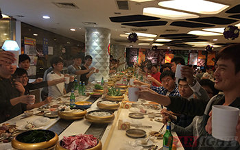 學(xué)員們?cè)谝黄鹣嗷ソ徽剬W(xué)習(xí)的收獲和體會(huì)、以及在 學(xué)習(xí)中遇到的問題和不足,平時(shí)看到的都是學(xué)員認(rèn)真學(xué)習(xí)專注的一面,而在聚會(huì)上看到的又是學(xué)員們活潑熱情、青春活力的另一面,進(jìn)餐中間,學(xué)員們紛紛舉杯,向 我們沈陽中心的校長以及老師們敬酒,表達(dá)他們的感謝、感激之情。整個(gè)聚會(huì)氣氛融洽,所有人在一起就像一個(gè)溫馨的大家庭,大家的感情也在這次聚餐中漸漸加 深。