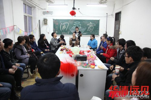 2月10日下課后,學生們陸續來到408教室,大家圍坐在一起,猜燈謎,做游戲,演節目,鬧元宵。