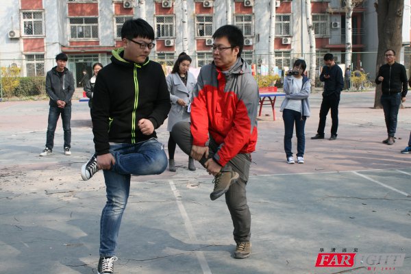 游戲項目正式開始,運動會分為幾個游戲項目,分別是:單腿斗雞、不倒森林、接力賽跑、能量傳遞和拔河。