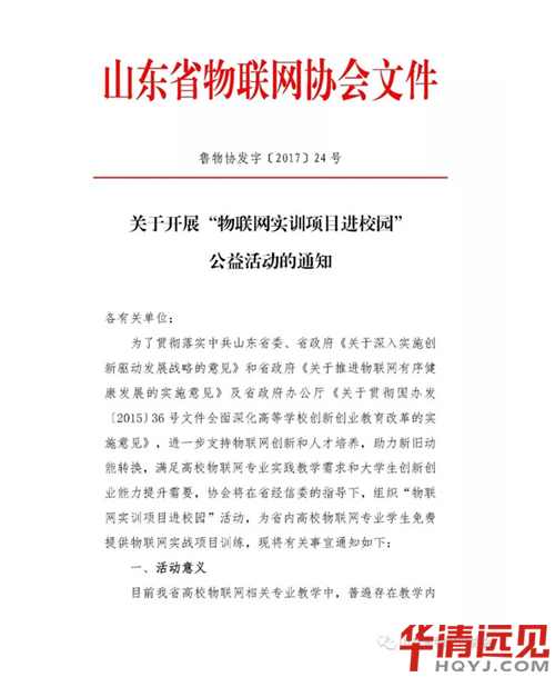 學生和企業“零距離”,再惡劣的天氣,再緊迫的時間 都阻擋不了企業對我們學生的鐘愛。 17年是一個不同凡響的一年,也是個為繁忙的一年 2017年11月,濟南華清遠見和山東省物聯網協會共同承辦了“物聯網實訓項目進校園”公益活動。 為山東省高校的物聯網人才提供“雙驅動”,進一步提升山東省物聯網創造力大賽作品質量。