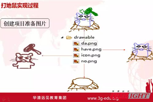 溫故而知新,下面小編就帶大家回顧一下這次課程的主要內容: 這次的課程主要目的是通過展現打地鼠這個小游戲的開發過程,讓大家了解安卓游戲開發流程以及Eclipse、SDK的使用。方法思想學到手,走到哪里都不愁! 首先,要明確打地鼠游戲設計框架以及所涉及的技術點,這是整個開發過程非常重要的部分。小伙伴們在以后的開發過程中也要先理清思路,再一步步前進哦!