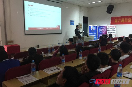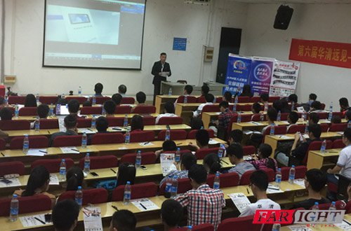 2016年5月21日,周六下午,第六屆華清遠見-ARM全國巡回技術講座——武漢站在湖北第二師范學院成功舉行。本次講座是由華清遠見教育科技集團聯手ARM公司共同舉辦的。講座圍繞著智能家居、智能交通、智能儀器的開發運用而展開,同時還引入大學生智能創新大賽。現場來賓都是對智能開發有著濃厚興趣的在校學生或是已處在智能開發工作崗位前沿的社會人才,我們的講座內容豐富有趣,理論與儀器相結合,大家對此也是頗為贊賞。 講座正式開始的時間是下午1點半,在下午1點之后就有參會人員依次簽到入場,到會人員簽到時每人都領了一份調查問卷表。講座中間會有3輪抽獎環節,而抽獎唯一憑證就是調查問卷的有效信息。1點到1點半之間,我們華清的老師在大廳外面展示了我們的教材和自主研發的智能手環,智能手表,智能小車,智能家居等設備,大家對我們設備很有興趣。在聽了我們老師的講解和演示之后,有學生自己也動手操控了我們研發的智能小車。