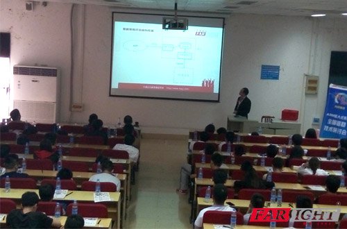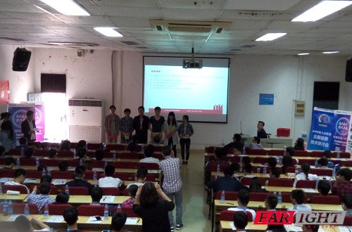 圖為:第一輪抽獎合影 第二位演講的是華清遠見的講師程姚根講師,程老師有著豐富的嵌入式Linux課程培訓經驗,擅長ARM體系結構及接口編程,同時程老師講課風趣幽默又有水準,因此深受學生歡迎。程老師此次演講的主題是智能家居的開發與應用思想。智能家居通過物聯網技術將家中的各種設備(如音視頻設備、照明系統、窗簾控制、空調控制、安防系統、數字影院系統、影音服務器、影柜系統、網絡家電等)連接到一起,提供家電控制、照明控制、電話遠程控制、室內外遙控、防盜報警、環境監測、暖通控制、紅外轉發以及可編程定時控制等多種功能和手段。與普通家居相比,智能家居不僅具有傳統的居住功能,兼備建筑、網絡通信、信息家電、設備自動化,提供全方位的信息交互功能。本套系統可以實時的檢測家里的溫濕度、光照等傳感器的數據,客戶可以通過手機的APP隨時知道家里的環境信息,并且還可以通過手機來控制家里的一些設備,如:燈、風扇、門等,同時可以實現獲得通過本套系統實現視頻的播放。現場觀眾對程老師講的智能家居很感興趣,同時也有自己的想法,以至程老師講完后還繼續和老師探討了很久。
