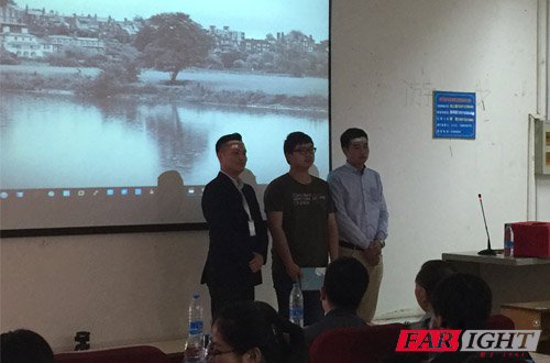 圖為:陳顥文老師演講 陳老師講完之后是第一輪抽獎環節,抽獎嘉賓有陳顥文老師擔任,第一輪抽獎共抽出3等獎5名,每人獎勵華清遠見提供的精美筆盒一個,同時與陳老師合影。