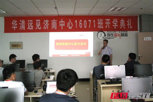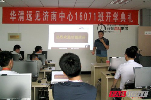 開班典禮上季總裁致辭 高校嘉賓孫主任在致辭中表示,在IT相關專業,很多畢業生都存在理論太多、動手能力不夠等問題。華清遠見教育科技集團在這方面做了大量的研究和實踐,有非常完善的管理和保障體系,對大學生未來的就業、創業都有非常大的幫助,經過綜合考察,正式將“山東師范大學MBA實踐教學基地”授予華清遠見濟南中心,今后安排安排更多的本科生、研究生到華清考察、實踐和學習。