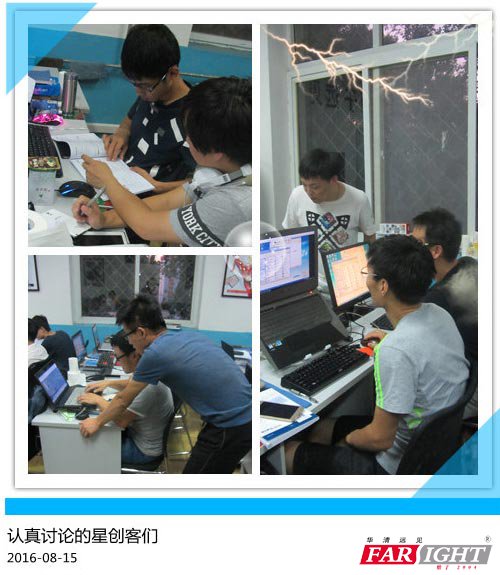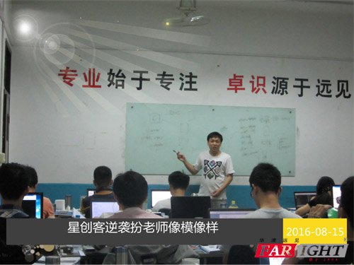 夜,總能過濾掉白天的些許浮躁,留下片片沉靜!夜幕下,燈光照亮了教室,透過窗子落在樓下操場上,站在操場正中,可以聽到教室稀稀疏疏耳語聲,時大時小,那是…… 8月15日晚自習21點,第二期星創(chuàng)客教室人依然滿滿當當?shù)摹0凑粘@?0點鐘老師會要求學員們回宿舍休息,而有的學員卻表現(xiàn)的精力十足,學習到子夜方歸。不要問為什么,或許只有身在其中的他們才能更好的體會。這是怎樣的一幅畫面,相信今天的汗水,必將化作明天的收獲。