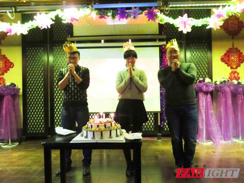 時光飛逝,歲月如梭,轉眼間忙碌的2016年已過去,充滿期待的2017向我們走來。2017年1月13日,西安中心全體員工齊聚一堂,共度聯歡,年會盛典正式敲響! 回首2016我們歡歌笑語,砥礪前行,不斷挑戰自我。展望2017我們信心滿滿,激情四射。 年會開始前,大家首先為1月生日的同事慶生,希望他們天天開心,事事如意,生日快樂!壽星們雙手合十,緊閉雙眼,許下新年心愿。