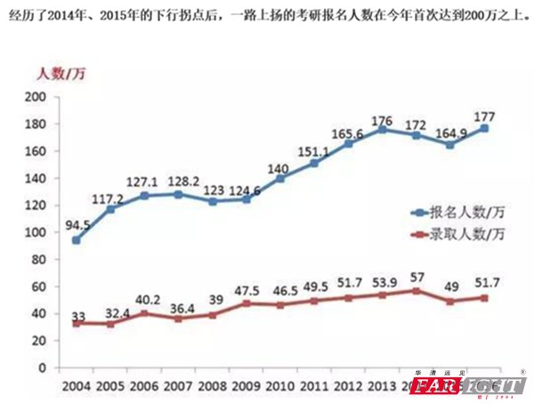 2017年考研報名人數(shù)首破200萬,在職研究生首次納入統(tǒng)考,考研升溫折射就業(yè)壓力。