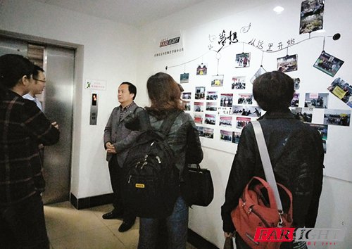 儀式開始前,濟南中心高校合作部孫經理帶領劉主任等老師先參觀了中心企業文化墻、項目案例實驗室、研發中心、崗前實訓室、職業素養訓練室、課程研發實驗室等,并到教室聆聽了講師授課情況。隨后德州學院劉院長和其他幾位老師與在中心就讀的德州學院學生做了交流,深入了解其就業及學習情況。