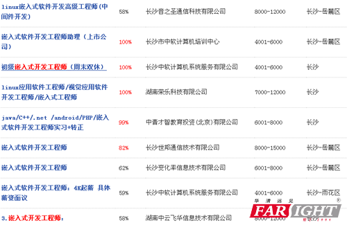 近,華清遠見干了一件“驚天地,泣鬼神”的大事——繼北京、上海、深圳、成都、南京、武漢、西安、廣州、沈陽、濟南、重慶11大分中心之后,華清遠見霸氣入駐長沙啦!這下長沙的小伙伴不需要東奔西走,在家門口就可以get IT技能,學習高端IT開發課程,找到高薪工作,走上人生巔峰! 求職新出路,高端IT我看行 近兩年,科技如脫了韁繩的馬一樣,迅猛發展。什么移動互聯網、物聯網、智能硬件出現在人們的視野中,時刻影響著人們的生活。同時,也給正在求職的你創造了一個絕好機會! 長沙作為湖南省的省會,是全國“兩型社會”綜合配套改革試驗區、中南地區重要的工商業城市,也是湖南省政治、經濟、文化、科教和商貿中心。2016年,長沙市發布了《人才供需報告》,報告中顯示,計算機/互聯網/通信/電子類等是行業崗位需求的看重點。這說明嵌入式軟件開發工程師、Java開發工程師、Android開發工程師、物聯網硬件工程師等崗位將受到企業的青睞。同時這些也是目前全國IT市場為緊缺的職位!想要做IT開發的同學是不是有些小激動嘞? 向錢看,向厚賺,招聘盛況大曝光 誰說談錢傷感情?面對人生頭等大事——找工作!薪資當然是我們關心的啦。這不,年后沒幾天,長沙兩大人才市場就舉行了15場招聘會,提供7萬余崗位! 通過一些招聘網站也可以看出,長沙IT行業的從業人員薪酬水平都很可觀!根據工作崗位和工作經驗的不同,嵌入式開發工程師的年薪從6萬至15萬不等,移動開發(Android、VR、HTML5等)工程師即使是實習崗位,月薪也普遍在6000以上!有的甚至達到萬元以上!此次華清遠見的入駐也是響應了眾多長沙小伙伴們的號召,將優質的課程,優秀的老師送到了家門口。 ![]() ![]() ![]() 元氣滿滿的一天,從加入華清遠見開始 作為早的嵌入式培訓機構,華清遠見教育科技集團自2004年成立至今,深扎高端IT就業培訓領域,始終堅持“做良心教育,做專業教育,做受人尊敬的職業教育”的理念,經過了十余年的沉淀,課程不斷升級,更貼近企業需求。同時就業服務也同步升級,全方位促進學員就業。每年為近千家企業輸送上萬名嵌入式開發、移動化聯網開發以及物聯網技術人才,學員憑借扎實專業的技術受到了眾多企業的好評! 華清遠見此次落戶長沙,將會為長沙地區的企業培養更多的高端IT開發人才,幫助更多熱愛技術開發的同學實現高薪就業的愿望。 不論你是即將畢業的應屆生,還是徘徊在迷茫中的職場新人,來華清遠見,讓我們幫你get IT技能,搞定高薪工作,走上人生巔峰,實現技術夢想!想要學習嵌入式開發、移動互聯網開發以及物聯網開發的長沙小伙伴們,請密切關注華清遠見動態,同時歡迎大家來長沙分中心學習參觀! 【聯系方式】 培訓地點:長沙市岳麓區旺龍路辰泰科技園D座3樓華清遠見 全國統一咨詢熱線:400-706-1880 課程咨詢:張老師 186-2758-2830 在線咨詢QQ:3420334358 【乘車路線】 公交路線: 乘坐公交車3路、9路、102路、109路、115路、116路、150路、159路、348路、402路、405路、807路到松桂園站下車,過馬路即到。 地鐵路線: 坐地鐵1號線到培元橋站(2出口)下車,向北走170米,左轉沿營盤路步行890米到達芙蓉中路口,再左轉步行100米即到。 坐地鐵2號線到芙蓉廣場站(4出口)下車,向前沿五一大道步行100米左轉進入芙蓉中路,再沿芙蓉中路步行700米即到。 相關資訊