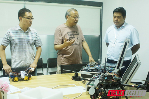(外事學院技應李主任) 接著教學主管劉老師介紹了我們的嵌入式實訓項目(智能小車、智能家具、四軸飛行器等),并和李主任針對教學課程內容做了詳細探討。針對簡單交流,李主任提出寶貴意見,華清表示真摯的感謝,今后也會努力改進,在深化教學改革、校企合作上做得更好,在人才培養上做到更優。