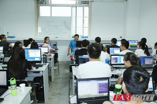 (左1華清譚副校長(zhǎng)、左2寶文理段書(shū)記、左3寶文理也是華清畢業(yè)生武同學(xué)、左4寶文理測(cè)控王老師、左5寶文理測(cè)控班主任高老師) 華清遠(yuǎn)見(jiàn)04年創(chuàng)立,不管是企業(yè)內(nèi)訓(xùn)還是校企合作,都秉持“做良心教育,受人尊重的教育”的原則砥礪前行,近幾年更是和各大高校強(qiáng)強(qiáng)聯(lián)手,幫助十余萬(wàn)學(xué)子成功就業(yè)。其寶雞文理與西安華清遠(yuǎn)見(jiàn)在校企合作上也建立長(zhǎng)期友好合作關(guān)系,優(yōu)勢(shì)互補(bǔ),為學(xué)生高端就業(yè)貢獻(xiàn)自己的力量。此次到訪華清譚副校長(zhǎng)熱情接待,并帶領(lǐng)老師們一起走進(jìn)實(shí)習(xí)環(huán)境。 華清譚副校長(zhǎng)簡(jiǎn)述了實(shí)訓(xùn)課程進(jìn)度和學(xué)生們的學(xué)習(xí)掌握程度,并詳細(xì)介紹了華清老師為實(shí)習(xí)生打造的準(zhǔn)職業(yè)人的教學(xué)模式。隨后,校企雙方就學(xué)生實(shí)訓(xùn)做了更深入交流探討。