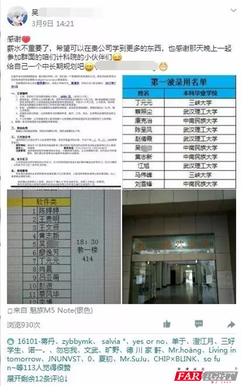 為什么今天提到他? 重點來了! 他也是我們華清遠見的優秀學員! 16101班的吳同學! 同時也是中南民族大學應屆畢業生。 2017年7月1日是他入職的好日子。 珠海市運泰*自動化**有限公司 以6K/月的薪資錄取了他。