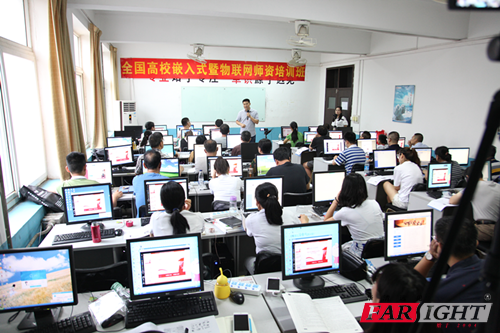 7月21日,外面淅淅瀝瀝下著小雨,陣陣涼風襲面而來,給這個炎熱的夏季帶來一絲涼爽感。也是在這樣一個清涼的日子里,2017暑期第16屆全國高校嵌入式暨物聯網師資培訓班在華清遠見教育科技集團順利開班了。 雖然天氣不是很好,但從各個高校趕來的優秀老師們全都準時的坐在了201教室里,翻著華清遠見的原創圖書,等待開班典禮的開始。 上午9時許,師資班開班典禮正式開始。首先走進大家視線的是擔任此次開班典禮的主持人,華清遠見北京中心的班主任胡老師。胡老師簡單介紹完此次師資班的開班目的后,依次請出了參與開班儀式的嘉賓,他們分別是華清遠見總裁季老師、技術總監劉老師及北京中心教學主管苗老師。三位老師氣勢昂揚的入場,臉上掛滿了微笑,簡直不要太興奮~