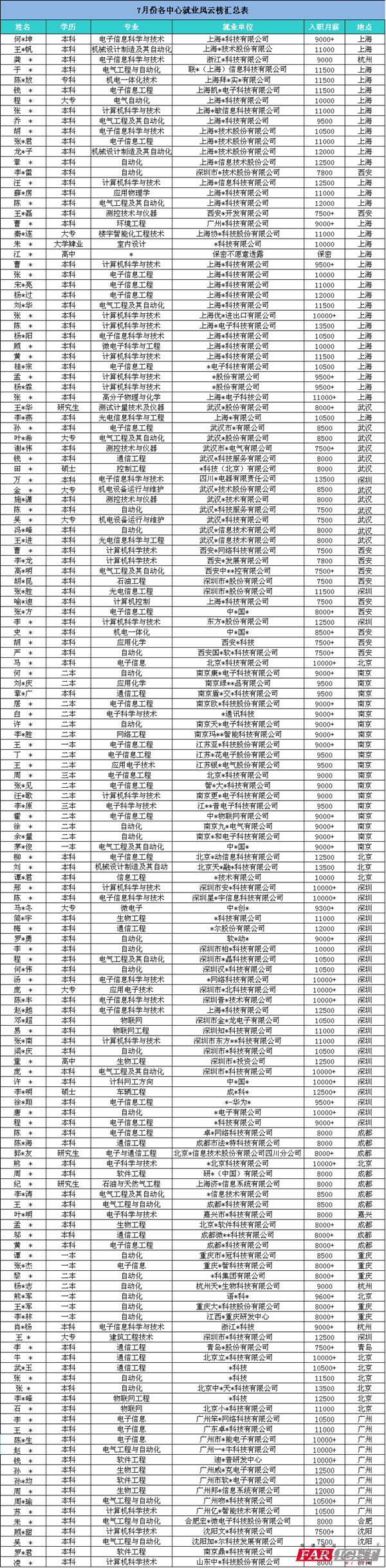 啦啦啦,啦啦啦 我是快樂的播報員 在7月高薪就業數據中 華清全國12大分中心均喜報連連 全國平均薪資保持在10k以上! 月薪資9k以上高達82%!