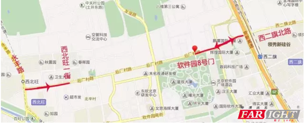 后廠村路,西貼永豐路,東臨京新高速,北靠百旺新城,南望軟件園區。