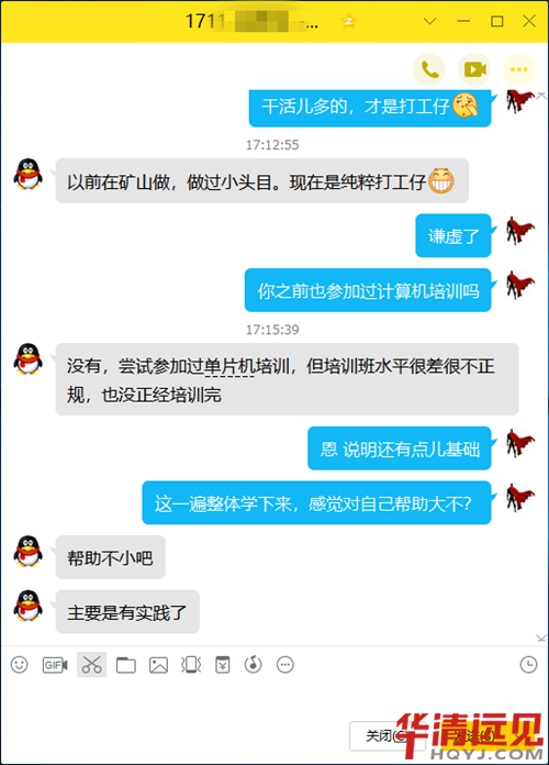大概兩三年前,本人偶然聽到嵌入式這個(gè)概念,于是買了一本《嵌入式系統(tǒng)移植和開發(fā)完全手冊》來看,也在網(wǎng)上搜索了一些相關(guān)資料,在這過程中了解到華清遠(yuǎn)見是做這方面培訓(xùn)的,并且做得比較好,所以一直有想?yún)⒓优嘤?xùn)的想法。但由于工作比較忙,所以也僅僅是想想而已。直到去年下半年,本人調(diào)換了一個(gè)工作,工作比較清閑,而華清創(chuàng)客學(xué)院網(wǎng)上培訓(xùn)也開通了,我參加培訓(xùn)的想法終于得以實(shí)現(xiàn)。