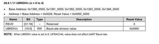 公式:DIV_VAL = (SCLK_UART/(bps *16))- 1 芯片手冊上有