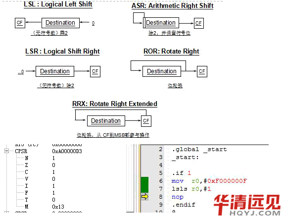 Lsl,lsls,asr,ror,rrx如果不加S,不影響標致位加S影響標志位,講義上是加s的圖示