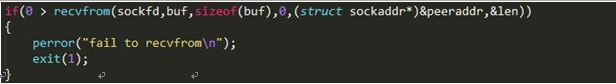 注意:與accept類似,在定義socklen_t addrlen =sizeof(struct sockaddr); 取地址傳參,必須先初始化,在不對len進行初始化時,recvfrom第一次接受的數據,內核處理會根據當前len值即亂碼進行數據處理,得到的地址信息結構體數據也為亂碼。之后,內核知曉地址信息結構體大小,會對len值進行修改,即第二次之后得到的地址信息結構體為正確的。未初始化時,如果變量內值為正數,則可以正常輸出,但值不正確,但若變量內值為負值,內核無法處理,則會直接報錯。