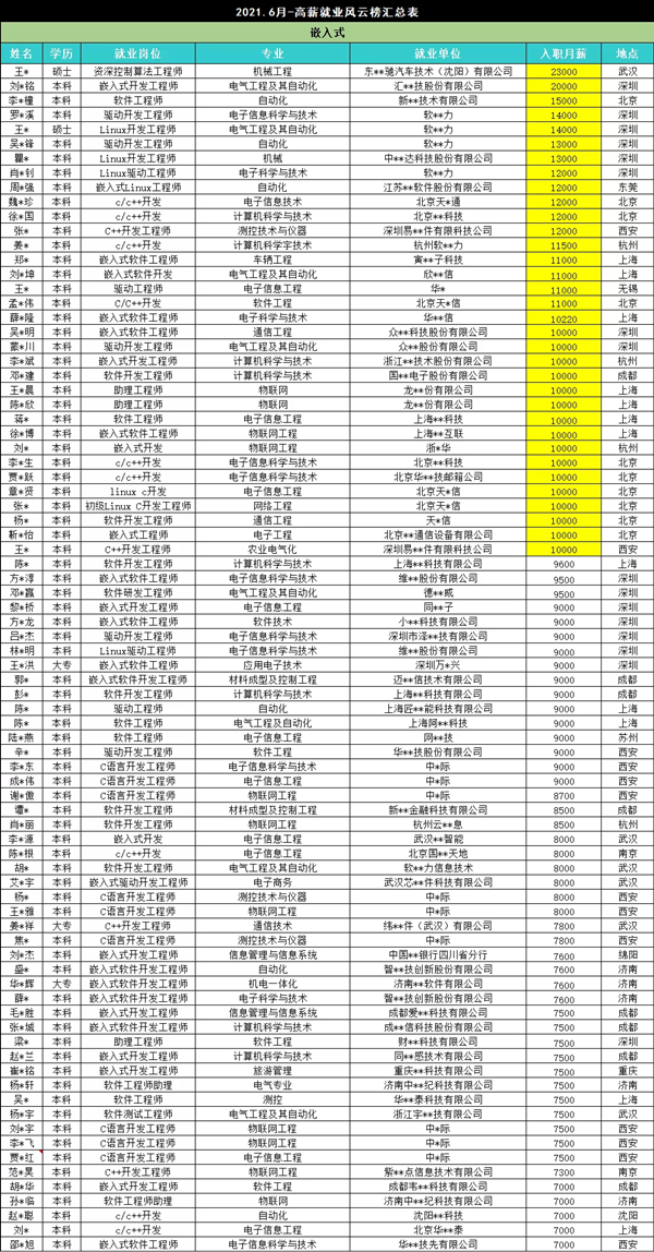 下面華妹帶大家一起看看華清6月就業風云榜的部分名單吧!