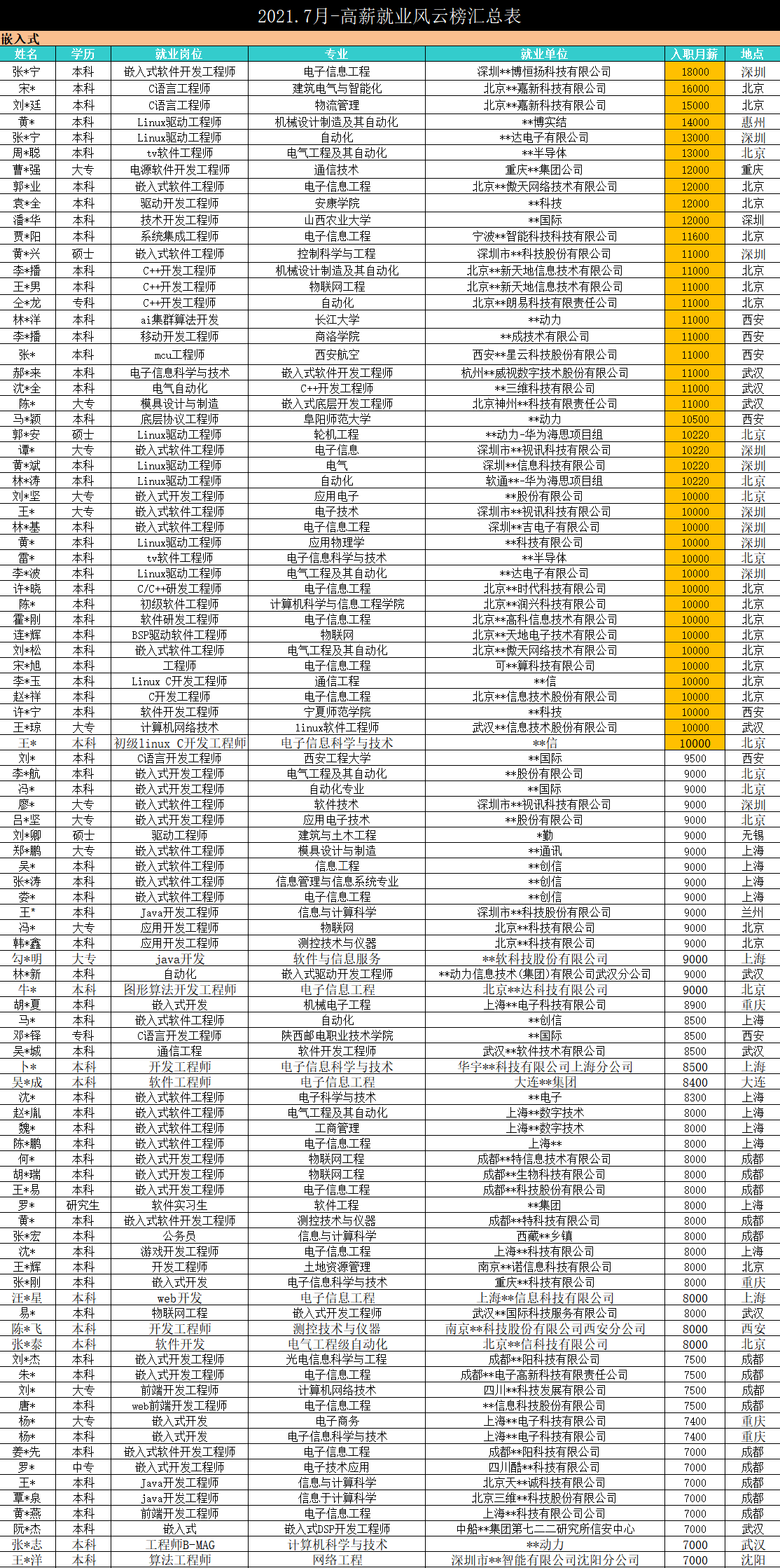 有一種浪漫叫做別人家的程序員,有一種工資也叫做別人家的工資,7月程序員薪資表駕到