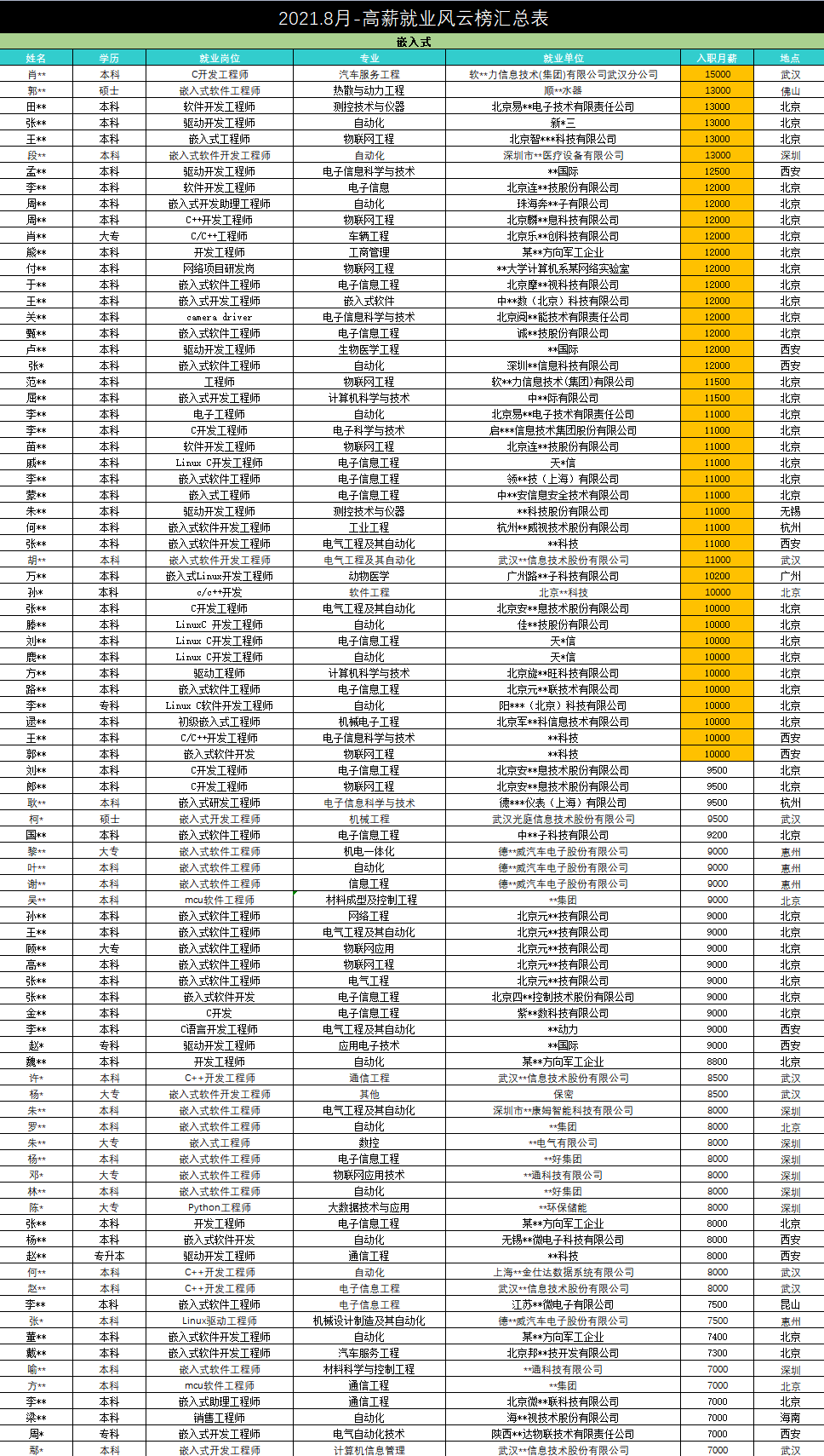 下面讓華妹帶大家看看8月就業風云榜的名單吧!