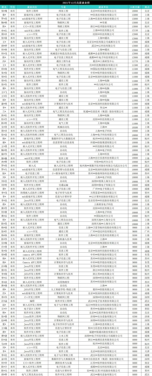 12月高薪就業榜丨最高月薪突破18K!