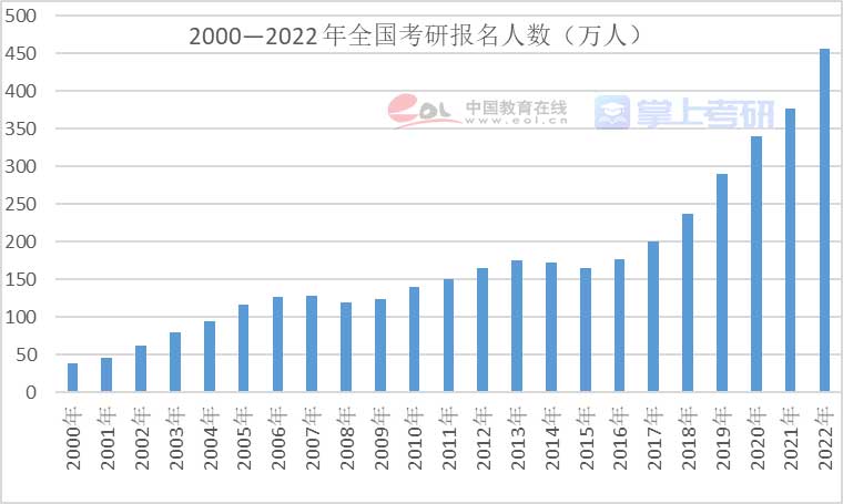 研究生考試剛過(guò)去不久,不知道各位同學(xué)們有沒有關(guān)心今年考研的情況?據(jù)統(tǒng)計(jì),2022年全國(guó)碩士研究生報(bào)名人數(shù)457萬(wàn),比2021年增長(zhǎng)了整整80萬(wàn),考研這條千軍萬(wàn)馬過(guò)的獨(dú)木橋真是越發(fā)擁擠了。