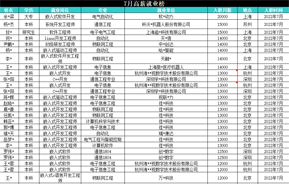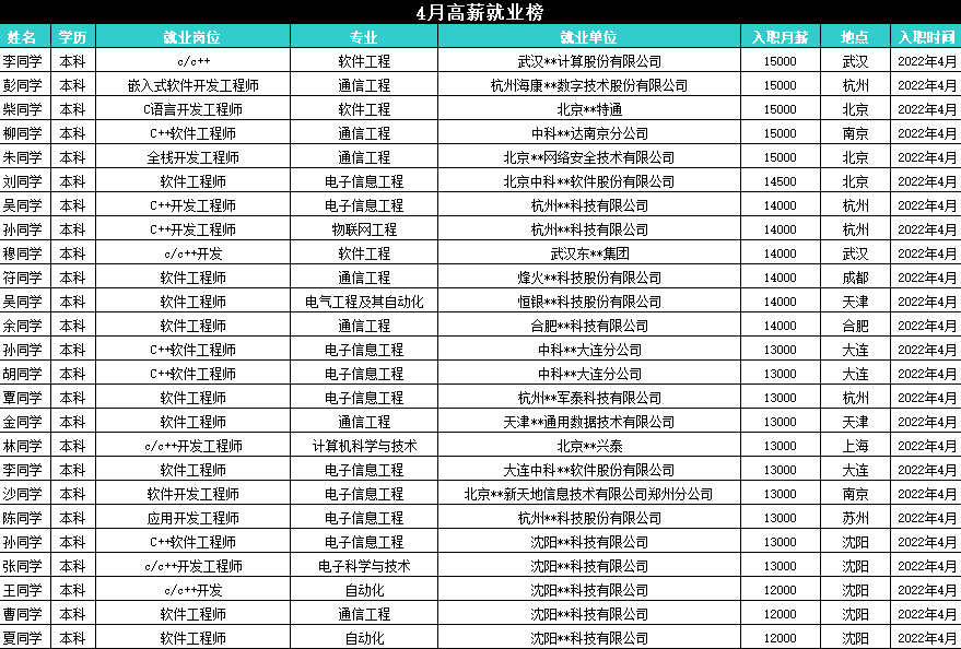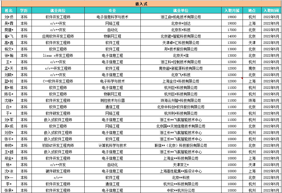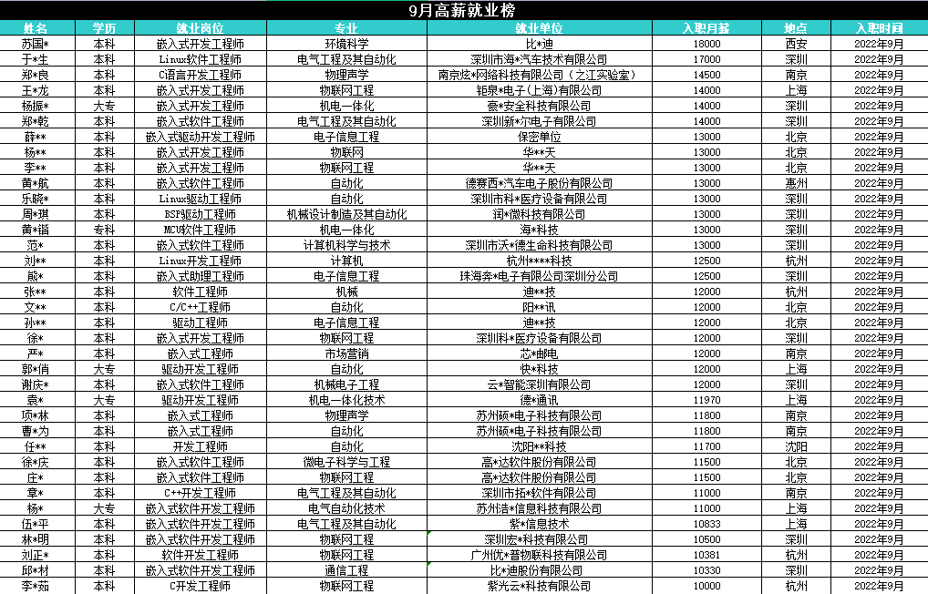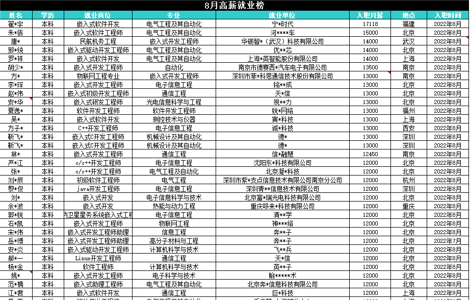 有很多學生選擇來到華清遠見學習嵌入式,2022年疫情持續不斷的情況下,每個月都有大量的學員成功就業