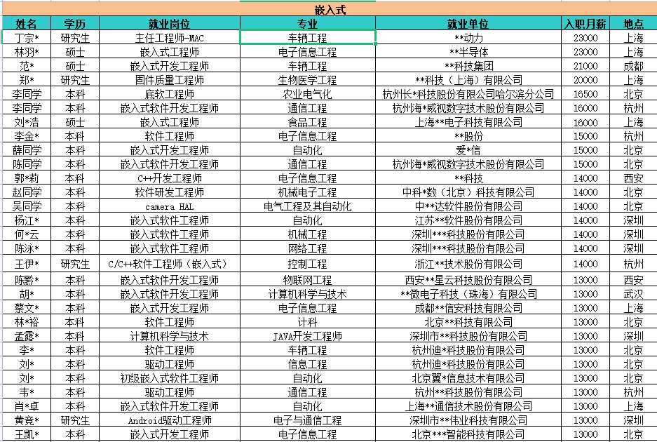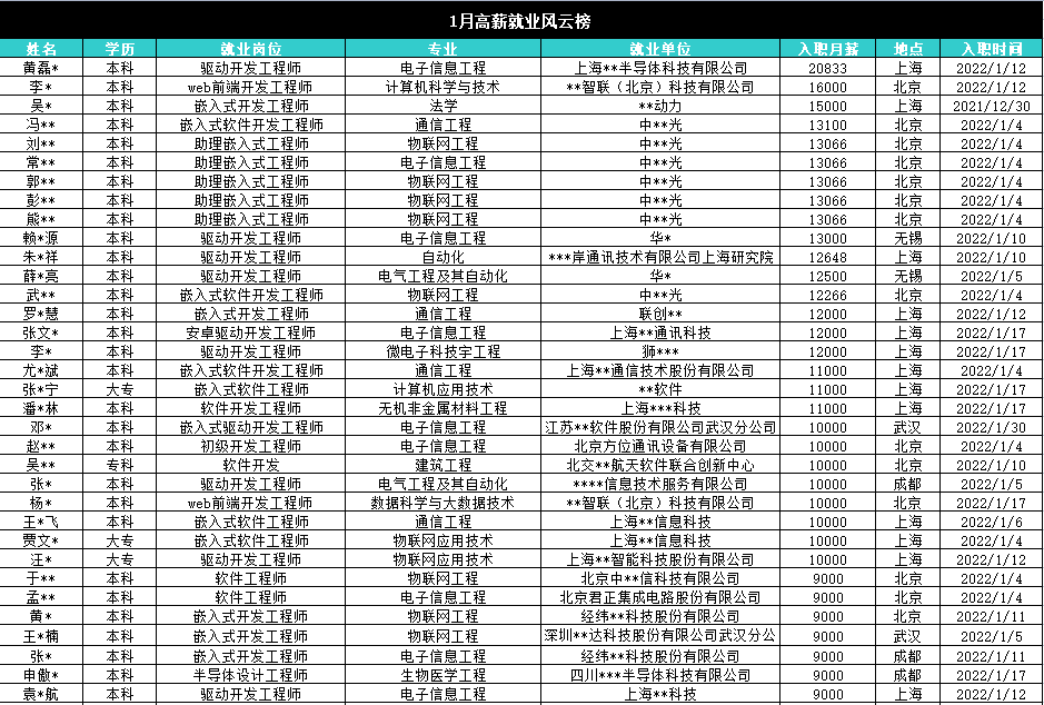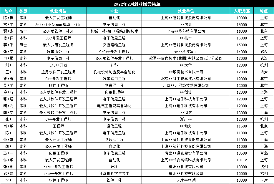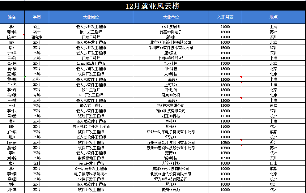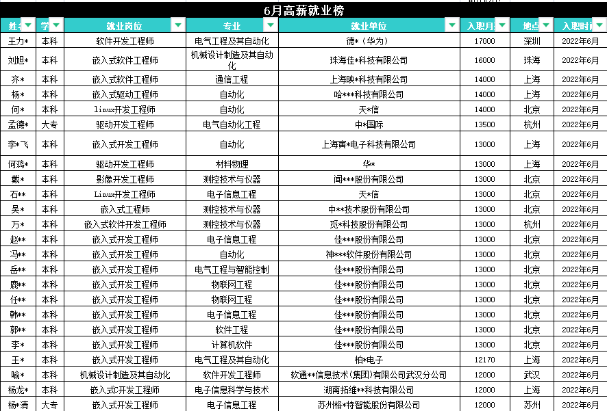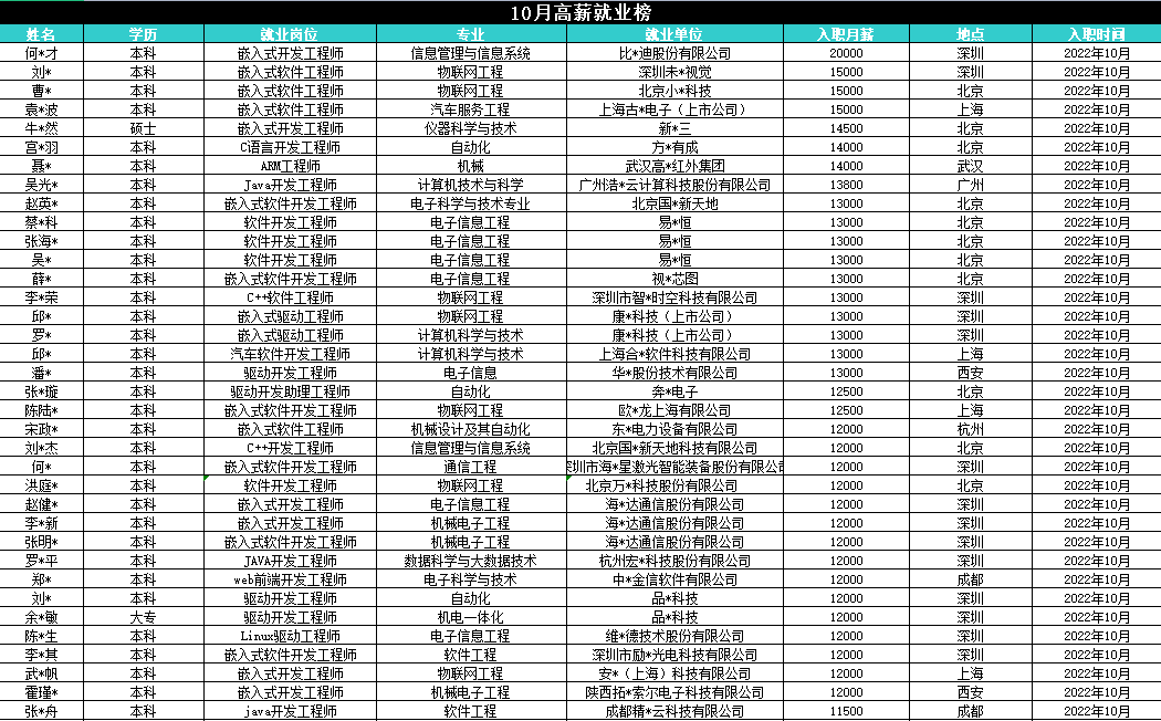 有很多學生選擇來到華清遠見學習嵌入式,2022年疫情持續不斷的情況下,每個月都有大量的學員成功就業