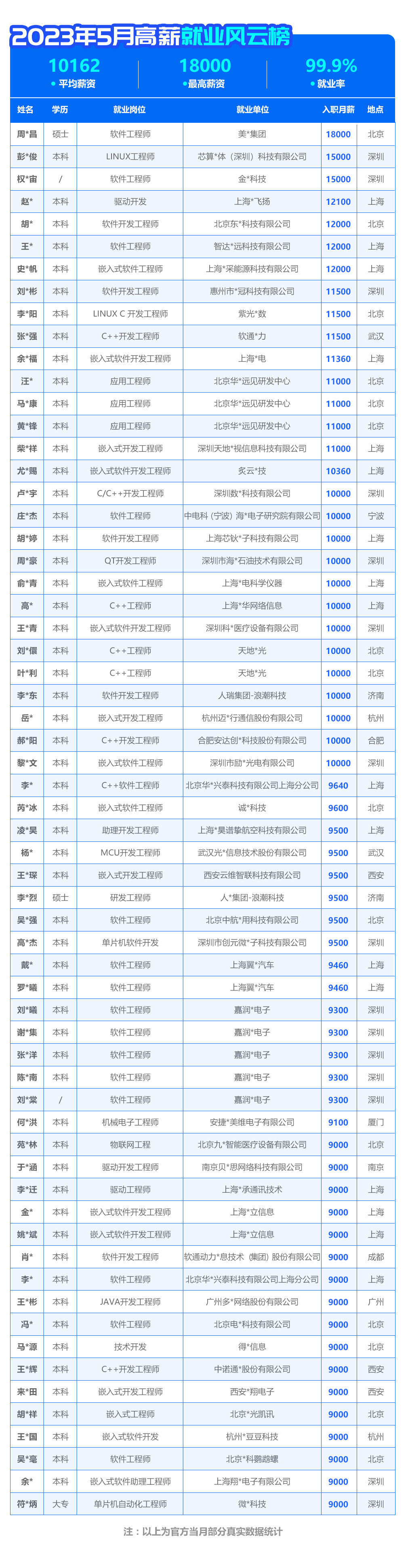 5月就業(yè)風云榜 | 均薪1w+!最高薪資18k!就業(yè)率高達99.99%!