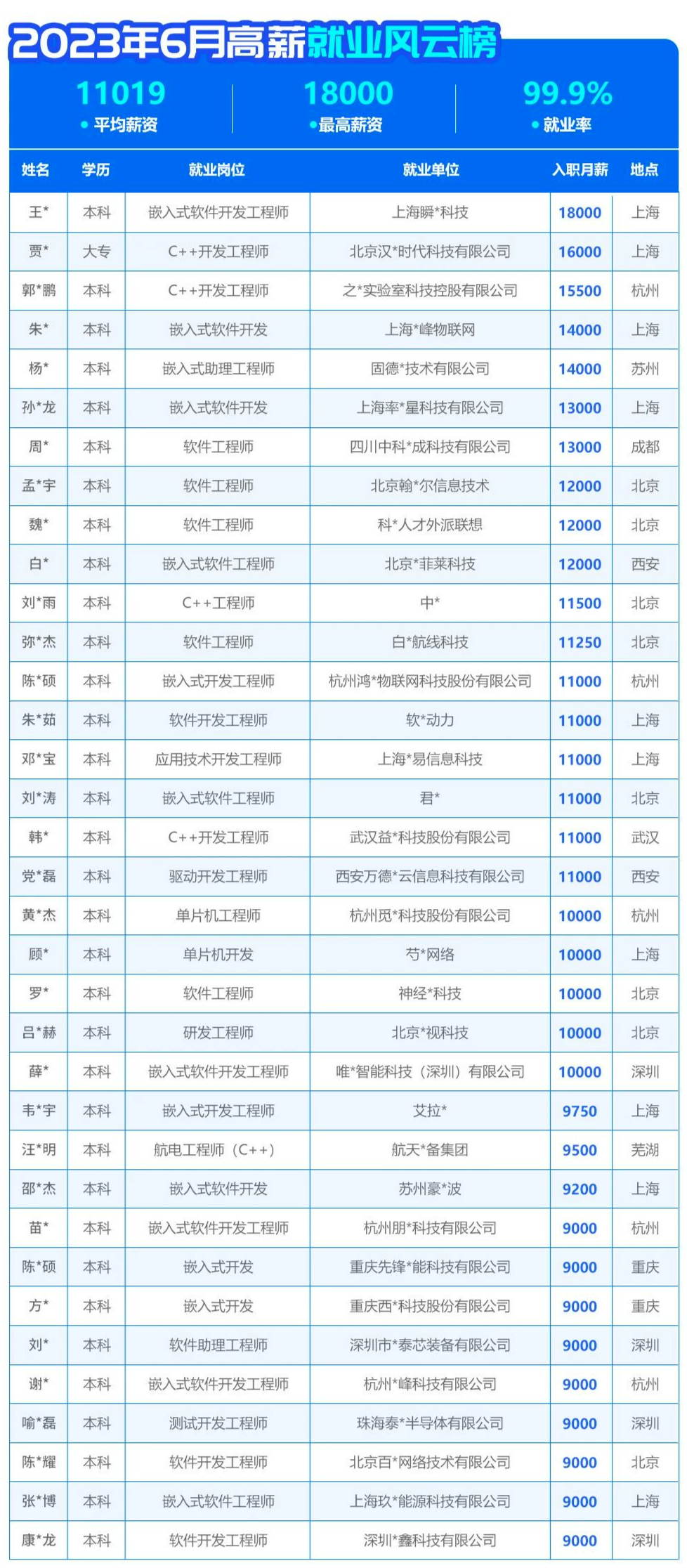 為什么這么說?別不信!華妹帶你看一下華清遠(yuǎn)見6月份高薪就業(yè)風(fēng)云榜,均薪1W+,最高薪資1.8W,就業(yè)率99.9%,快來看看這些學(xué)員的崗位以及薪資是否是你心中的那份所想~