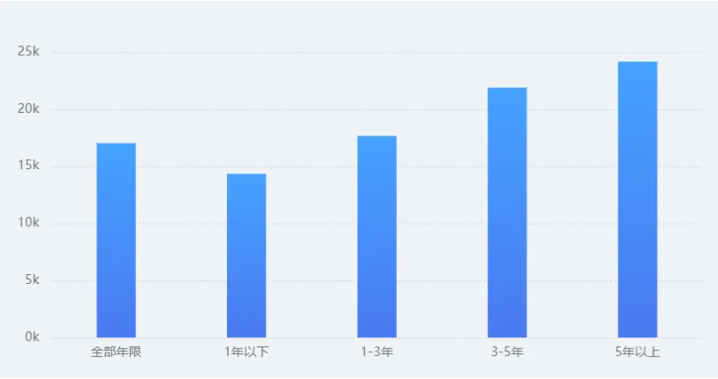 嵌入式軟件工程師的月平均薪資隨工作年限的增加呈正向增長的趨勢。據獵聘統計,嵌入式軟件工程師的起薪1W+,高于其他崗位,工作3-5年薪資可達20K。