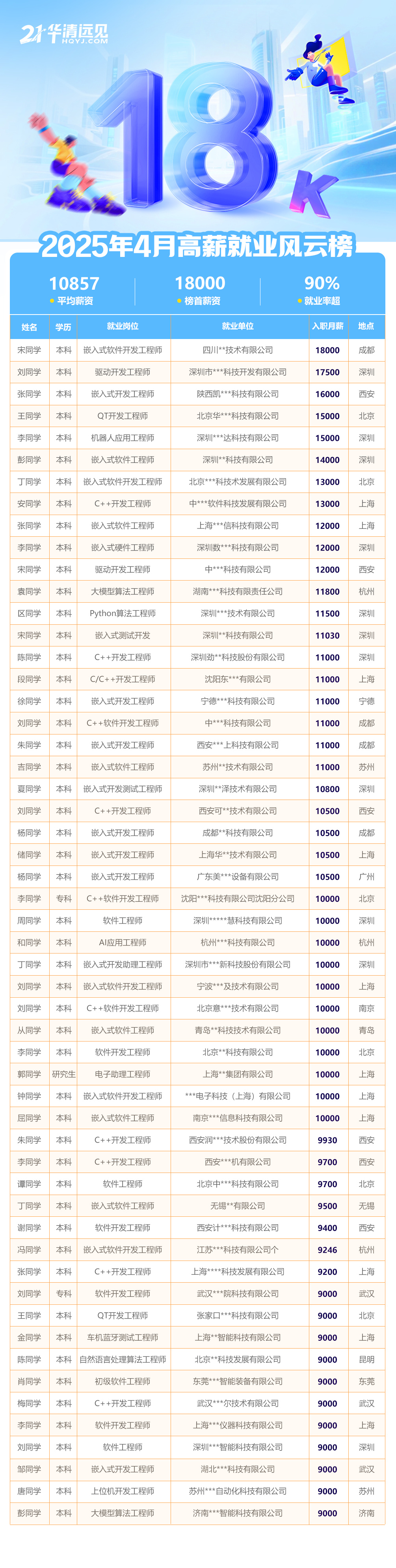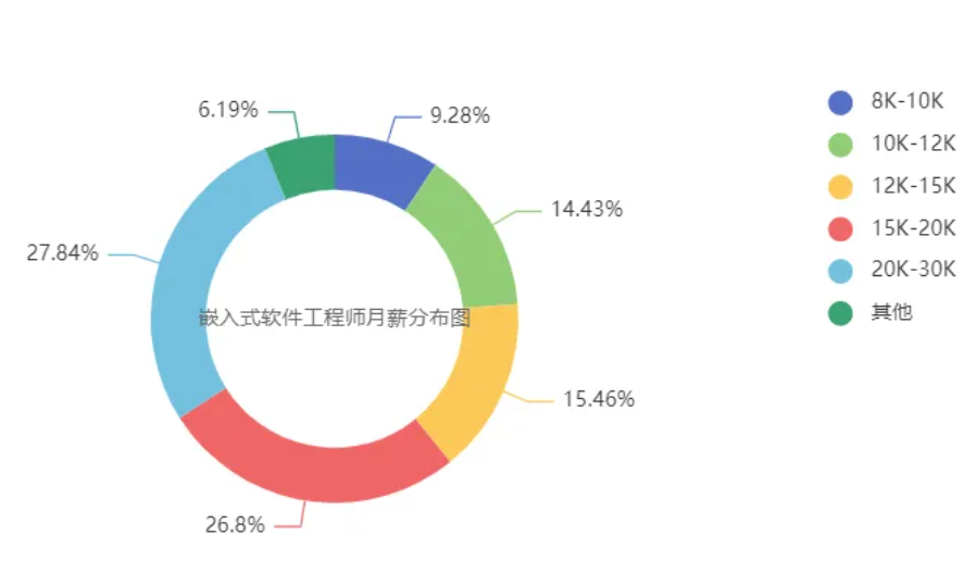 據獵聘統計,嵌入式軟件工程師的平均薪資超17K,10K以上人數占比90.72%,其中15-30K的從業者居多,超50%!