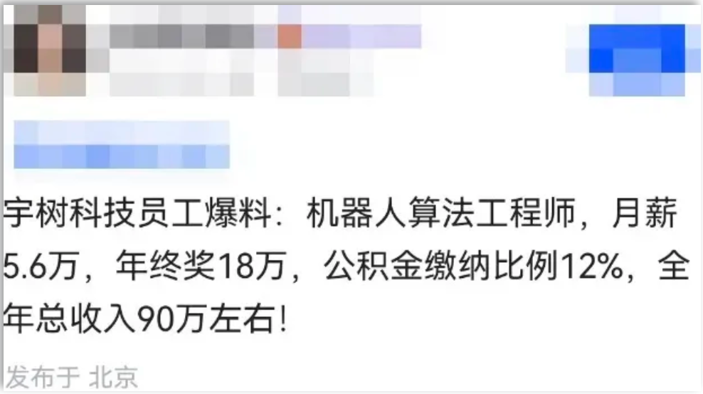 據爆料:宇樹科技員工爆料,機器人算法工程師,月薪5.6萬,年終獎18萬,公積金繳納比例12%,全年總收入90萬左右。