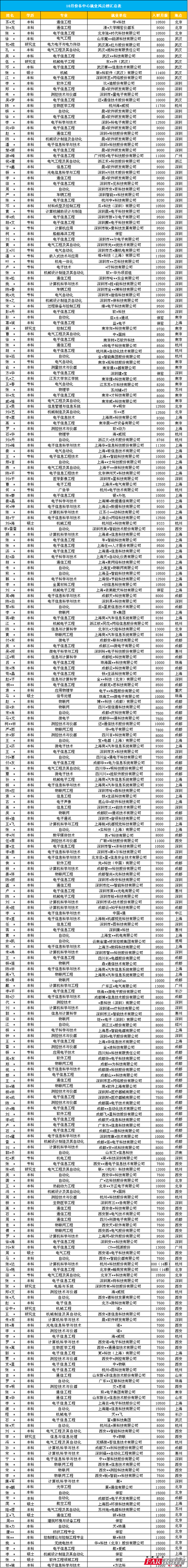在10月嵌入式高薪就業(yè)榜中