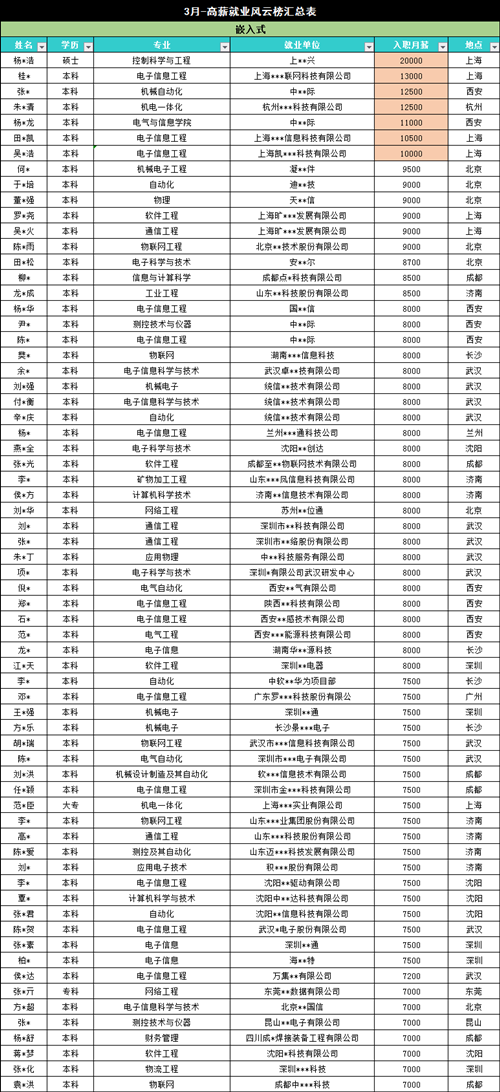 三月就業風云榜震撼來襲,疫情之下也能月薪20000!