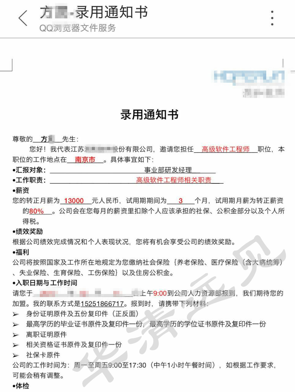 大家好!我是方*,來自1704班,之前在南京信息職業學院讀的大專,后來考上了南京郵電大學的在職研,17年參加了華清的培訓,畢業后,在江蘇潤和軟找到了工作,從事的是多媒體引擎的開發,月薪是13K,半年后,現在的薪資是16K。