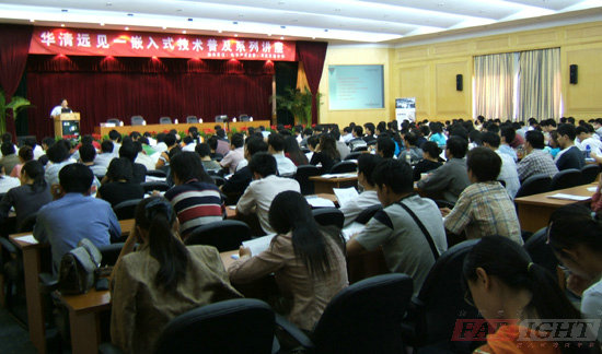 雖然是佳節將至、艷陽高照的周末,但是本次活動仍然吸引了眾多的DSP開發專業人員到場,會場爆滿。 本次研討會的主題分別是高性能實時信號處理系統(DSP和FPGA設計)概論、基于C6000的嵌入式實時系統軟件開發與調試、基于TMS320C6000系列DSP架構的系統集成解決方案。相關的講義可以從華清遠見網站的“下載中心”下載。有關這3個主題的培訓課程可以從華清遠見網站的主頁上查詢。 為答謝廣大朋友對北京華清遠見嵌入式培訓機構的支持,華清遠見為聽眾還準備了豐厚的獎品,一等獎(1名)是由北京瑞泰公司提供的“ICETEK5100-USB DSP仿真器”(市場參考價4800元),二等獎(6名)是由華清遠見講師的新力作《DSP應用開發實用子程序》(由人民郵電出版社于2005年9月出版發行)。 此外,北京瑞泰公司還提供了動手實驗臺,供聽眾親身體驗DSP開發的樂趣。 本次活動相關資料下載