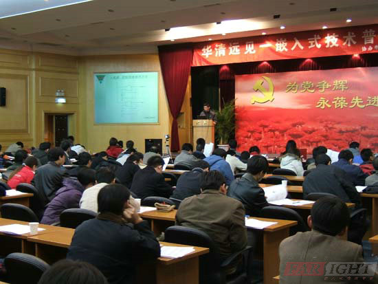 2005年12月4日下午,由《電子產品世界》雜志社主辦、軟件行業協會嵌入式系統分會協辦、北京華清遠見科技發展有限公司承辦的“華清遠見年末嵌入式系列活動”之DSP高級技術研討會在北京航空航天大學如心樓二樓報告廳隆重舉行。研討會吸引了近300名嵌入式愛好者,會場座無虛席。