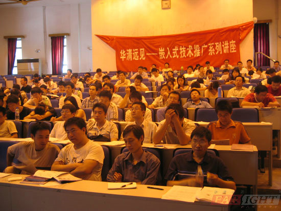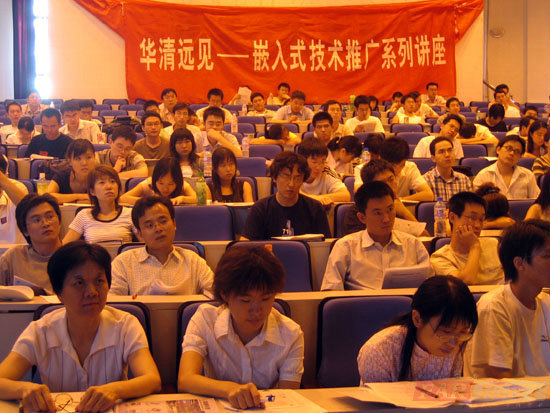 7月22日下午,由北京華清遠見科技發展有限公司主辦,21IC電子網協辦的嵌入式Linux/WinCE技術研討會在北京理工大學7號教學樓報告廳順利召開。此次研討會的合作伙伴北京革新科技有限公司 、 互動出版網也給予了大力支持,得到了200多人的積極響應,其中90%的是來自公司的技術研發工程師,另外還有一些在校學生。 本次研討會分為三個專題:嵌入式Linux開發要點、WinCE系統開發綜述和基于虛擬機的嵌入式開發,主講老師分別為華清遠見的孫志夫老師、張強老師和周明老師。在研討會結束前,周老師針對行業朋友提出的問題進行了熱心的解答,并在現場為聽眾演示了基于虛擬機的嵌入式開發。此外北京革新公司還為參加此次研討會的嵌入式愛好者提供了動手實驗臺,身臨其境體驗嵌入式linux開發的樂趣。 一位參加研討會的朋友談起,她非常喜歡這樣的活動,希望以后公司能舉辦更多的此類研討會。她在北京一家公司做ARM研發設計方面的工作,會上她時不時地作著筆記。 活動的后,為答謝廣大朋友對北京華清遠見嵌入式培訓機構的支持,華清遠見進行了現場抽獎活動,大獎(Real-Multi-ICE ARM通用型實時在線仿真器”)由昊天科技的張楠工程師獲得,恭喜這位幸運的朋友。