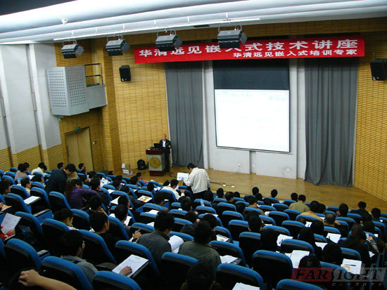 2009年12月27日華清遠見嵌入式技術研討會在深圳大學2號報告廳如期舉行,近200人參加了本次技術講座,到場的眾多嵌入式愛好者有的是來自企業的工程師,有的是在校的大學生,大家抱著對嵌入式技術同樣的熱情,加入到這次研討會當中。研討會上華清遠見展示了三十余本中心出版的嵌入式系列教材及各種學習資料,激發了參加者們更高的學習熱情。 本次研討會選取了目前在嵌入式系統生態系統中各個層面上的工程師關心的熱點問題:第一個專題ARM新技術及在3G領域的應用,由ARM的資深講師andy老師主講;第二專題為嵌入式linux開發調試,由華清高級講師易老師主講;第三個專題是目前流行的Linux開源平臺Google公司的Android系統,由華清遠見高級講師范一航老師主講。讓大家全面了解目前嵌入式行業芯片和軟件發展現狀,以及在3G領域的新應用。 場間休息時間雖然短暫,大家卻不愿意錯失向這些經驗豐富的老師們請教的機會,將老師們團團圍住,詢問各種學習、工作中遇到的技術問題,老師們也都做了令大家十分滿意的解答。為了感謝大家對華清遠見的支持,講座結束的時候特別進行了幸運抽獎活動,由英蓓特公司和百問網提供的開發板3套由3位正準備學習嵌入式技術的嘉賓獲得,這塊開發板將給他的學習提供極大的便利條件。 華清遠見多年來一直從事嵌入式技術的高端培訓,同時也致力于推廣和普及嵌入式技術,越來越多的企業和嵌入式愛好者們通過各種活動了解到華清遠見雄厚的師資力量和高質量的培訓效果。華清遠見將以更完善的培訓內容和更高的培訓質量服務于眾多的嵌入式愛好者們,感謝大家對華清遠見的支持和鼓勵,也期待您更多的關注!