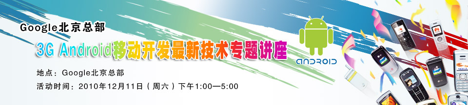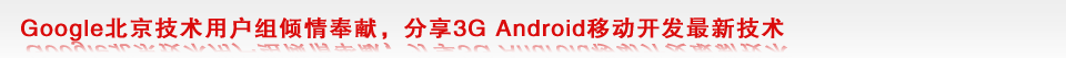 | 北京谷歌技術(shù)用戶組將在12月11日(周六)下午1:00—5:00在北京谷歌公司總部舉辦一場(chǎng)3G Android移動(dòng)開發(fā)新技術(shù)專題講座活動(dòng),培訓(xùn)講座中將分別通過三個(gè)專題與眾多嵌入式開發(fā)專業(yè)人士及技術(shù)愛好者一起分享3G Android移動(dòng)開發(fā)新技術(shù),以大家進(jìn)入手機(jī)開發(fā)領(lǐng)域。 |
