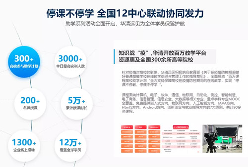 高校畢業生就業方面,華清遠見聯合眾多就業合作企業和合作高校開展“千企百校線上招聘會”活動,面向應屆畢業生,開展百余場線上實習實訓,組織了幾百場“云”招聘會。