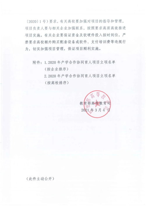 為深入貫徹《國務院辦公廳關于深化產教融合的若干意見》(國辦發〔2017〕95號)精神,落實《教育部 工業和信息化部 中國工程院關于加快建設發展新工科 實施卓越工程師教育培養計劃2.0的意見》(教高〔2018〕3號)要求,深化產教融合、校企合作,教育部高等教育司組織有關企業和高校深入實施產學合作協同育人項目。