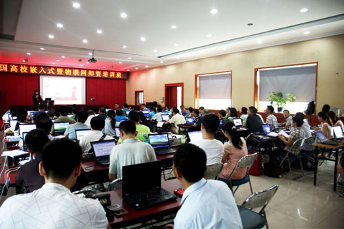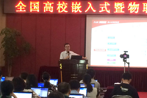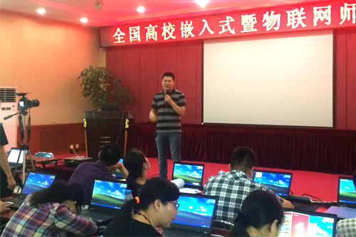 為進(jìn)一步推動全國高等院校嵌入式暨物聯(lián)網(wǎng)專業(yè)教學(xué)工作的開展,加強(qiáng)各高等院校同行間的交流,培養(yǎng)嵌入式及物聯(lián)網(wǎng)的師資力量,2016年7月22日上午9時(shí),在工信部軟件與集成電路促進(jìn)中心和教育部教育管理信息中心指導(dǎo)下,由華清遠(yuǎn)見教育科技集團(tuán)主辦、軟件行業(yè)協(xié)會嵌入式系統(tǒng)分會協(xié)辦,并聯(lián)手ARM、飛思卡爾、Atmel共同舉辦的"全國高校嵌入式暨物聯(lián)網(wǎng)師資培訓(xùn)班"在京隆重開講。此次會議的參會嘉賓有華清遠(yuǎn)見教育科技集團(tuán)少校總裁季久峰、研發(fā)中心技術(shù)總監(jiān)劉洪濤,以及來自全國近五十所學(xué)校的近百名精英教師。